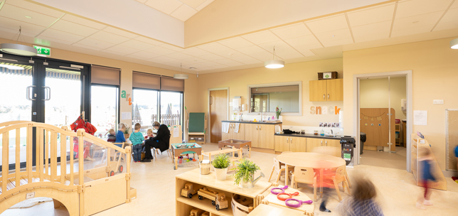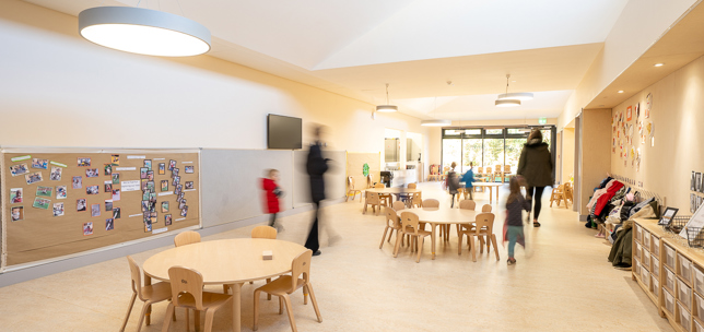 The open-plan design supports free play and independence, with free-flow access to the garden, allowing children to choose between indoor and outdoor activities. The garden serves as an extension of the playrooms, offering endless opportunities for exploration, creativity, and learning.