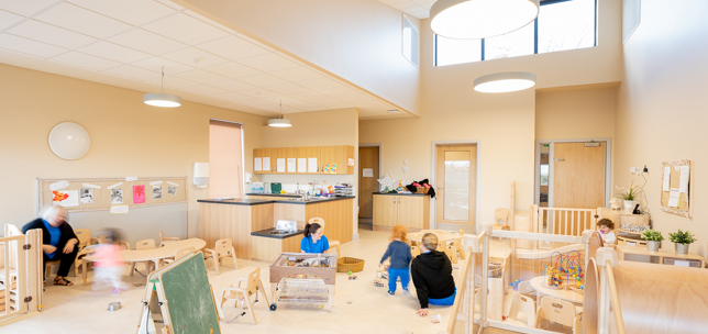 Our large, purpose-built setting is designed to inspire and engage children at every stage of their early years. The nursery features three open-plan playrooms, providing space for up to 78 children: